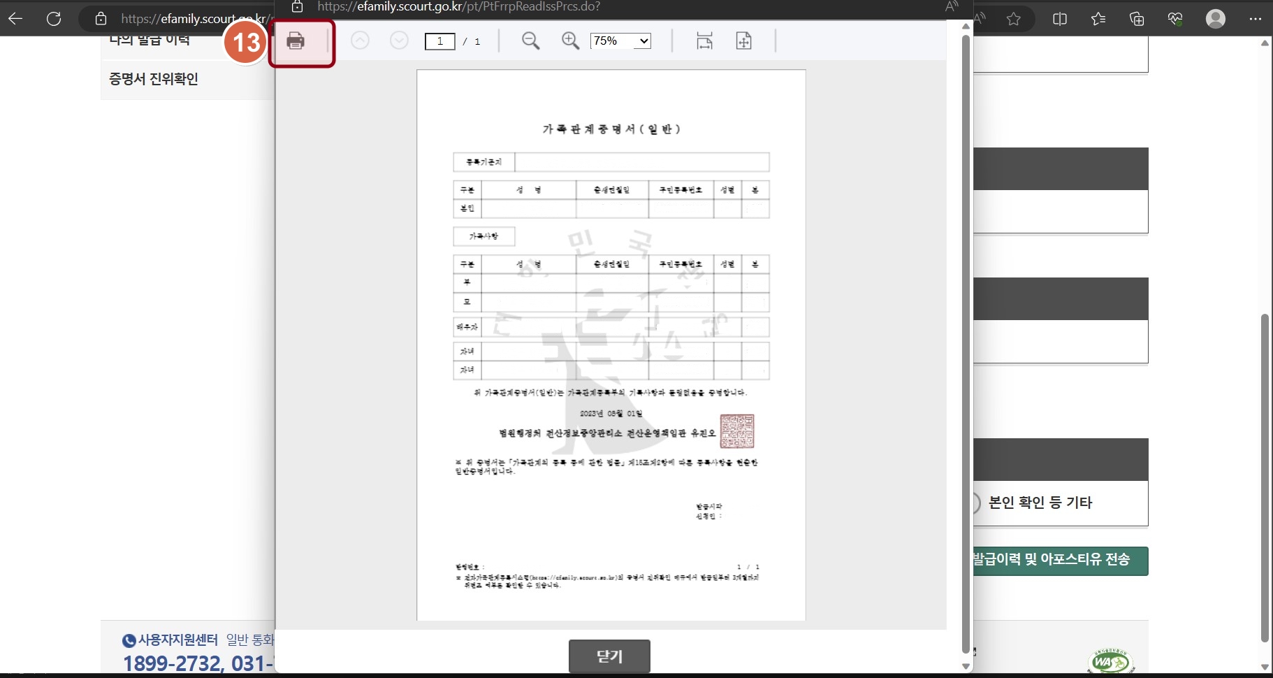 가족관계증명서 인터넷 발급 완료입니다.수고하셨습니다 ^^