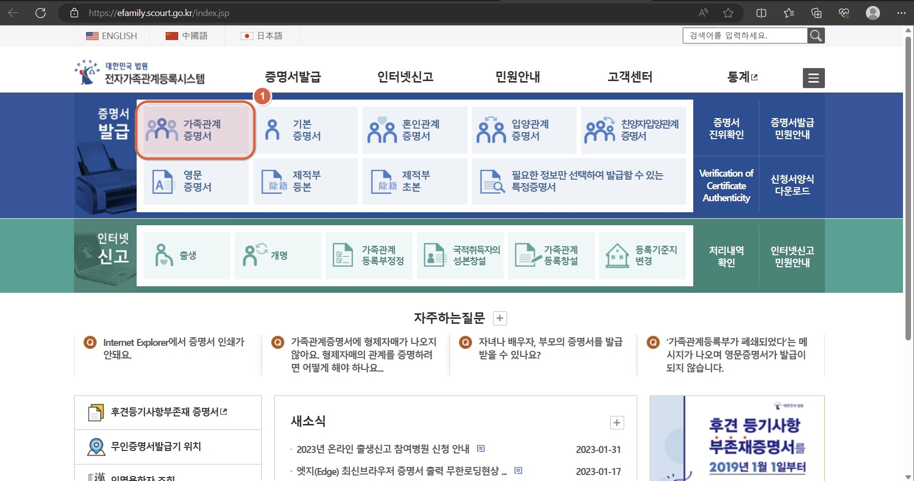 가족관계증명서 인터넷 발급 방법에 대해서 알아보겠습니다.